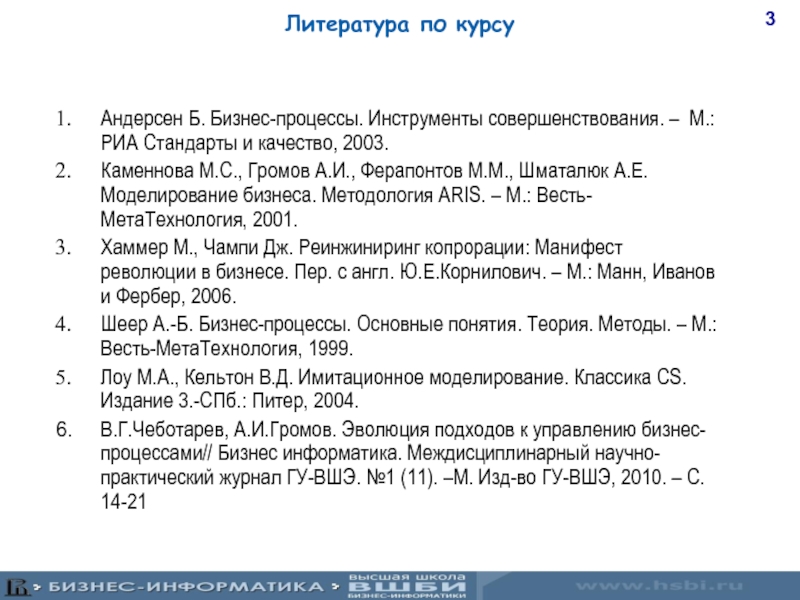 Шеер А.-Б. Бизнес-процессы. Основные понятия. Теория. Методы. – М.: Весть-МетаТехнология, 1999.