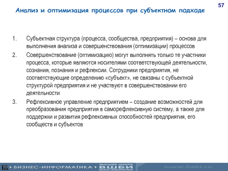 Слайд 57Анализ и оптимизация процессов при субъектном подходе