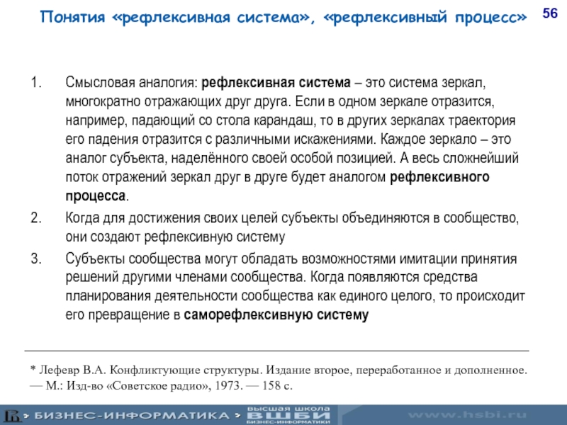 Слайд 56Понятия «рефлексивная система», «рефлексивный процесс»