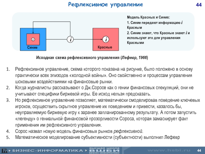 Рефлексивное управление, схема которого показана на рисунке, было положено