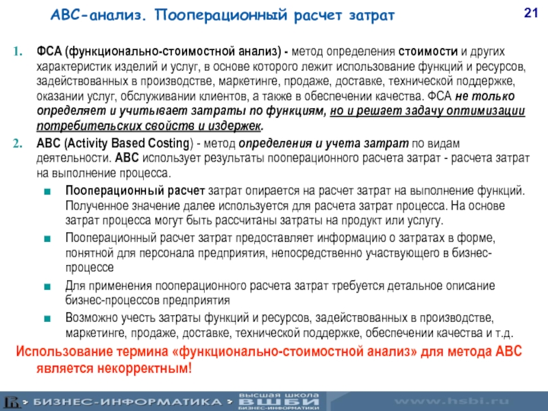 Анализ стоимостных характеристик процесса (анализ затрат)