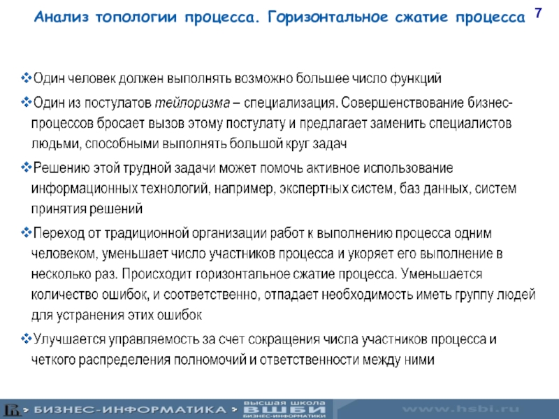 Слайд 7Анализ топологии процесса. Горизонтальное сжатие процесса