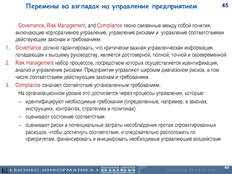 тесно связанные между собой понятия, включающие корпоративное управление, управление рисками