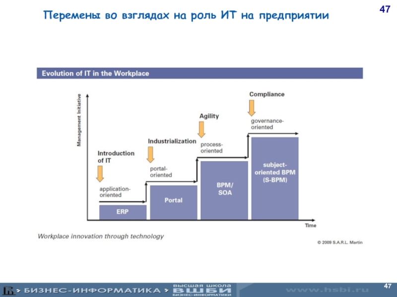 Слайд 47Перемены во взглядах на роль ИТ на предприятии