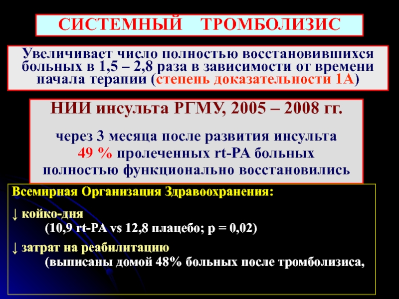 смертность от инсульта в остром периоде в России приближается к 40% (ранняя 30-дневная летальность), увеличиваясь к первому году заболевания до 50%