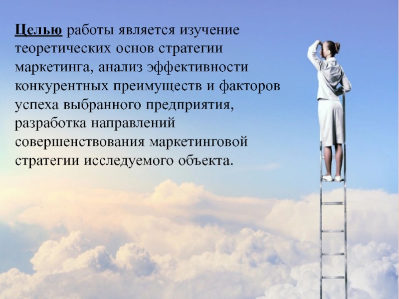 Слайд 7Целью работы является изучение теоретических основ стратегии маркетинга, анализ эффективности