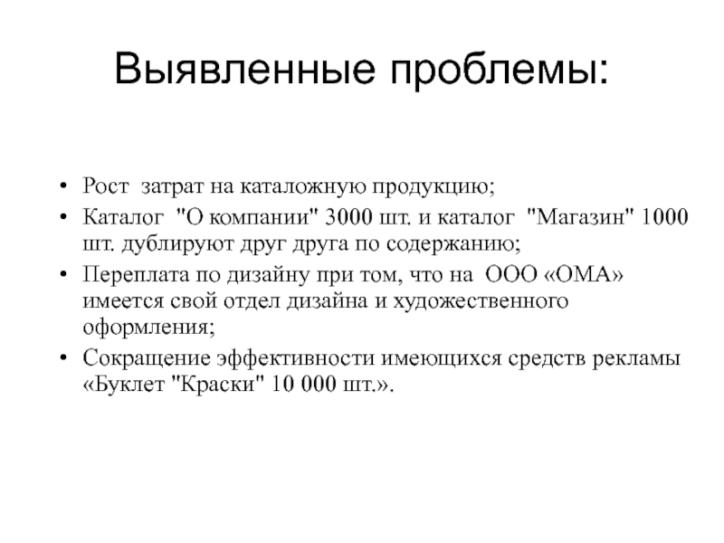 Выявленные проблемы:Рост затрат на каталожную продукцию;Каталог