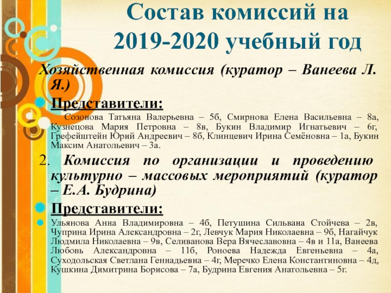 Слайд 5Состав комиссий на 2019-2020 учебный год