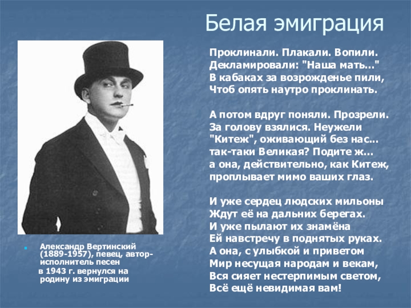 Александр Вертинский (1889-1957), певец, автор-исполнитель песен