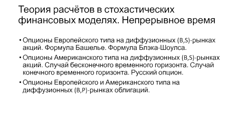 Теория расчётов в стохастических финансовых моделях. Непрерывное время
