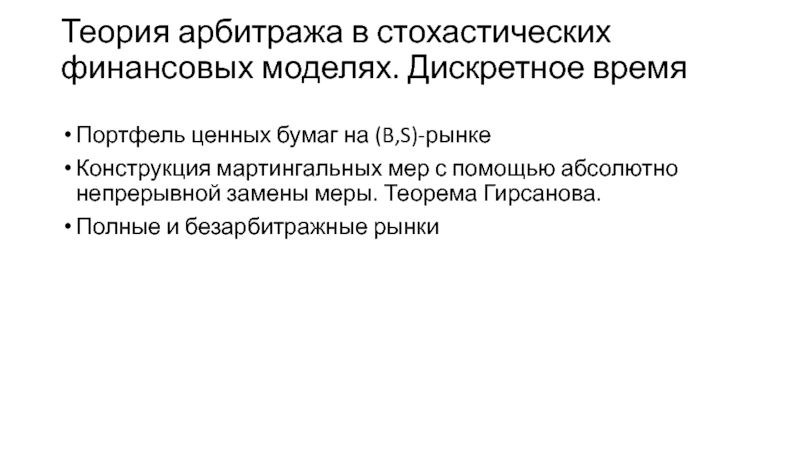 данныхТеория арбитража в стохастических финансовых моделях. Дискретное время