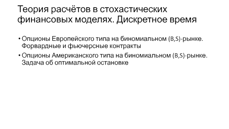 Теория расчётов в стохастических финансовых моделях. Дискретное время