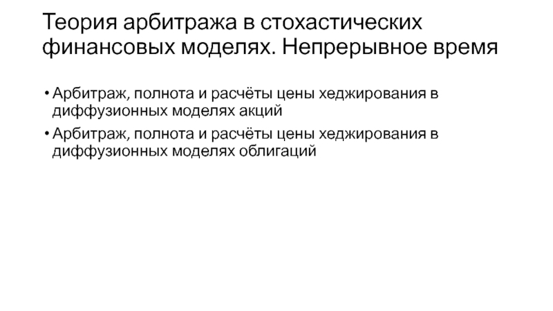 Теория арбитража в стохастических финансовых моделях. Непрерывное время