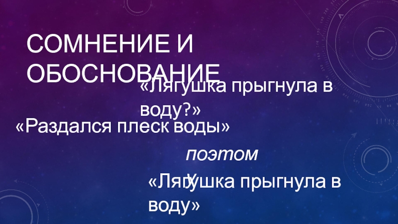 Сомнение И обоснование «Лягушка прыгнула в воду?»«Лягушка прыгнула в воду»«Раздался плеск воды»поэтому