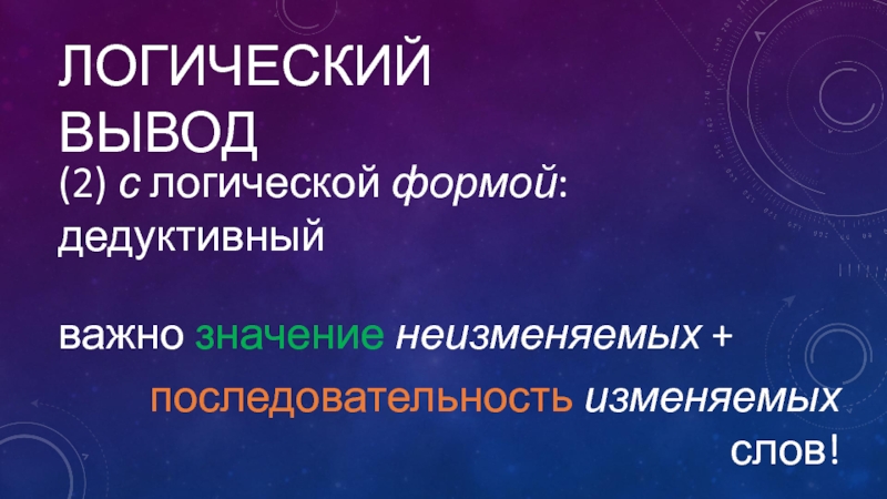 Логический вывод(2) с логической формой: дедуктивныйважно значение неизменяемых + последовательность изменяемых слов!