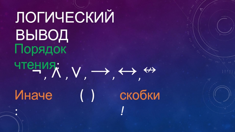 Логический выводПорядок чтения:¬˄,,˅,→,↔,↮Иначе:скобки!( )