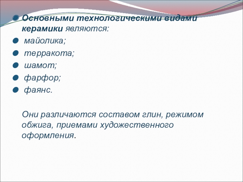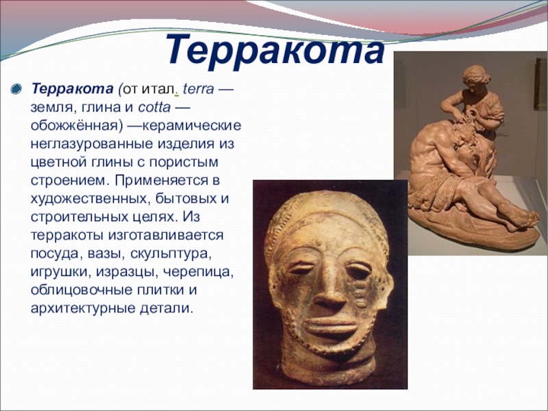 обожжённая) —керамические неглазурованные изделия из цветной глины с пористым строением.