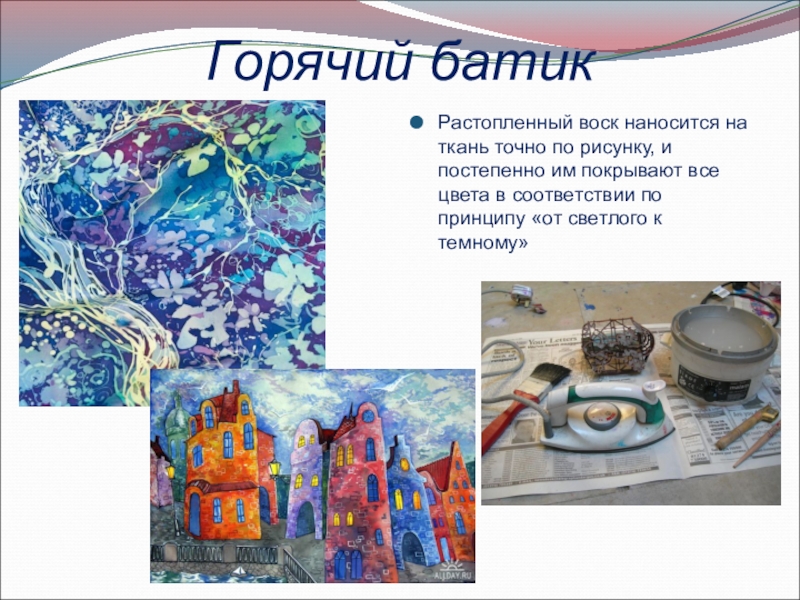 Рисунок выполняется по ткани специальным составом (резервом) при помощи
