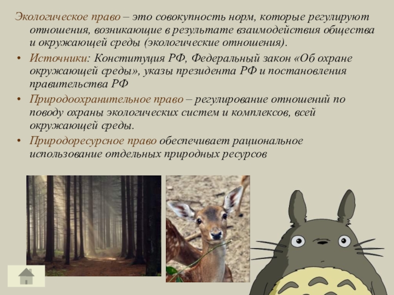 Слайд 12Экологическое право – это совокупность норм, которые регулируют отношения, возникающие