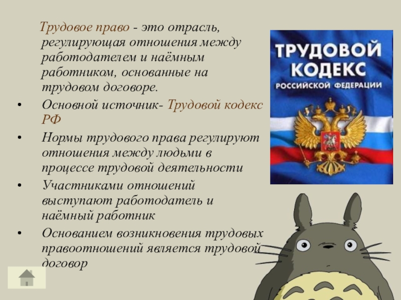 Слайд 9 Трудовое право - это отрасль, регулирующая
