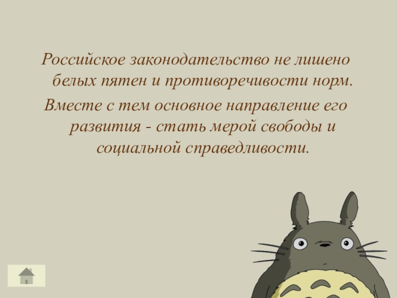 Слайд 13Российское законодательство не лишено белых пятен и противоречивости норм.
