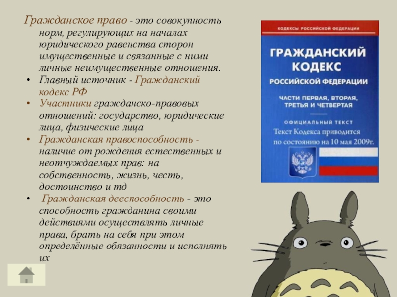 Слайд 8Гражданское право - это совокупность норм, регулирующих на началах юридического