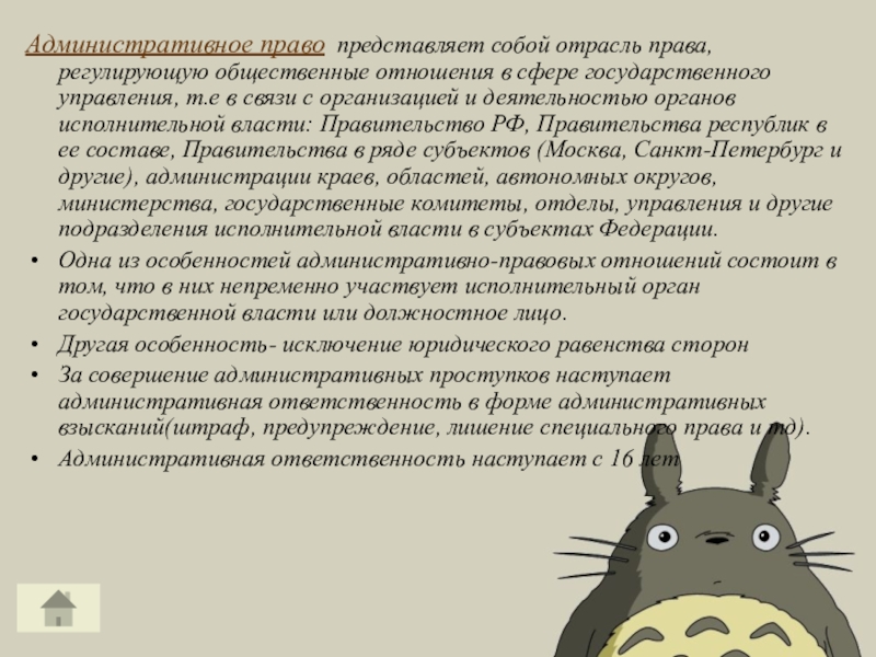 Слайд 7Административное право представляет собой отрасль права, регулирующую общественные отношения в