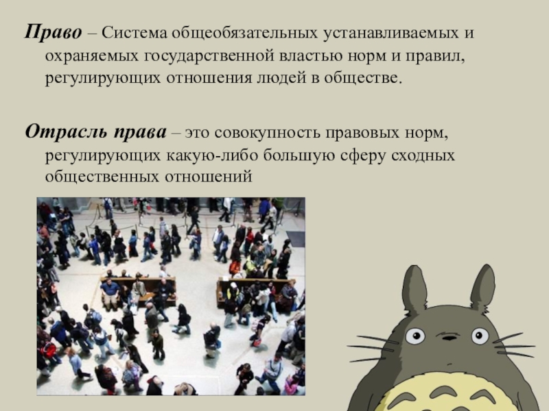 Слайд 2Право – Система общеобязательных устанавливаемых и охраняемых государственной властью норм