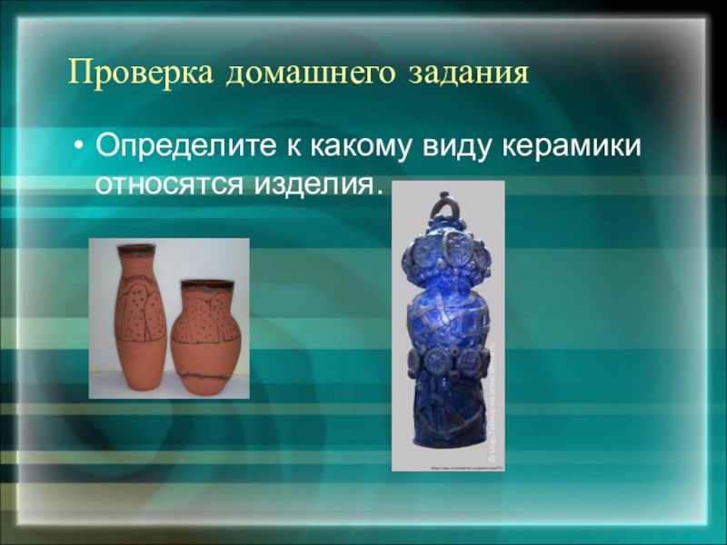и мозаика, архитектурные детали, мебель), так и относительно мелкие (посуда,