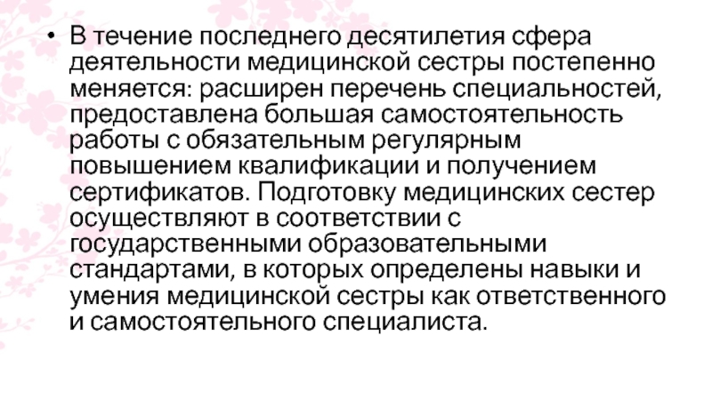 Слайд 5В течение последнего десятилетия сфера деятельности медицинской сестры постепенно меняется: