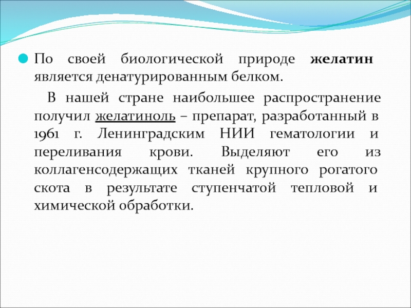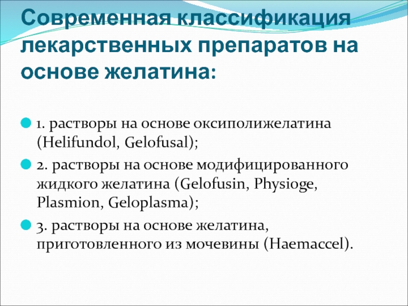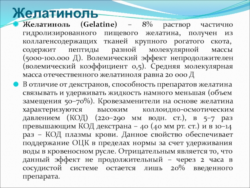 Производные желатина – желатиноль, гелофузин, желифундол и др.