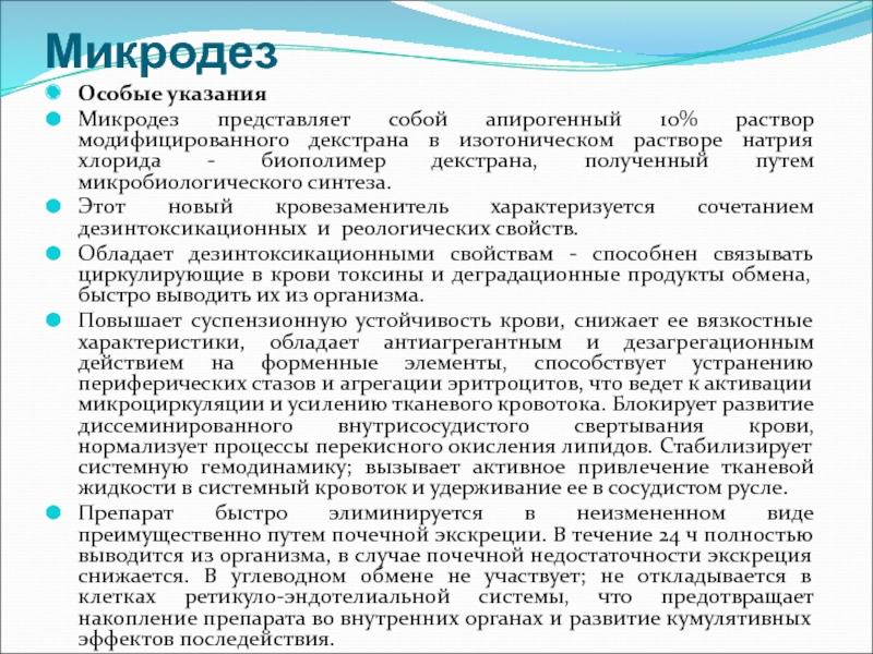 Микродез представляет собой апирогенный 10% раствор модифицированного декстрана в