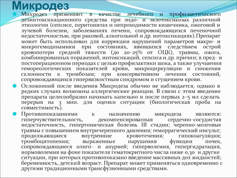 Микродез применяют в качестве лечебного и профилактического дезинтоксикационного средства при