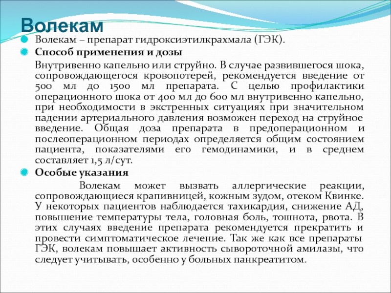 Волекам – препарат гидроксиэтилкрахмала (ГЭК).