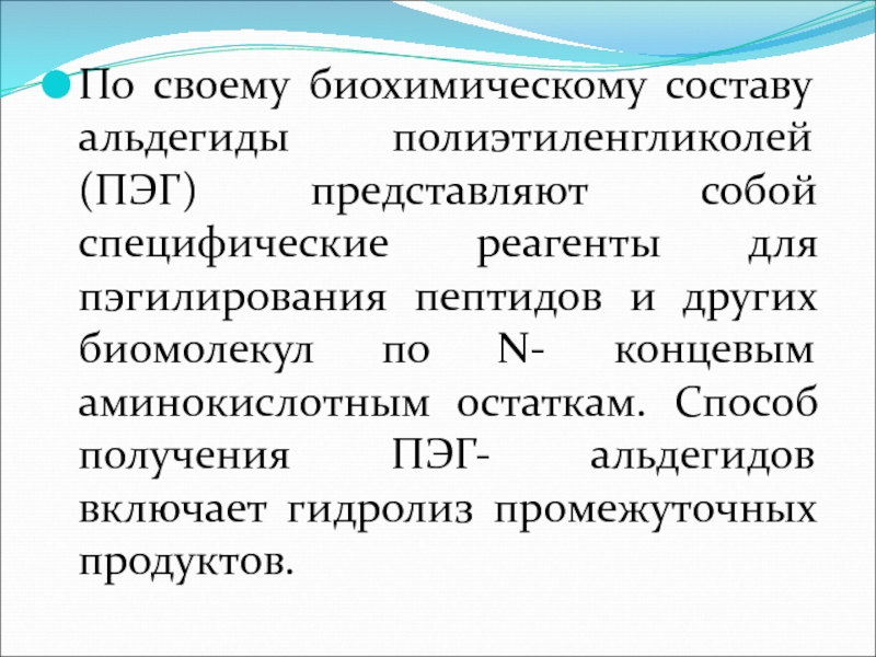 Слайд 38По своему биохимическому составу альдегиды полиэтиленгликолей (ПЭГ) представляют собой специфические