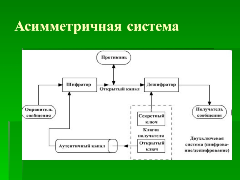 основе алгоритма и ключа, в результате которого возникает шифрованный текст.