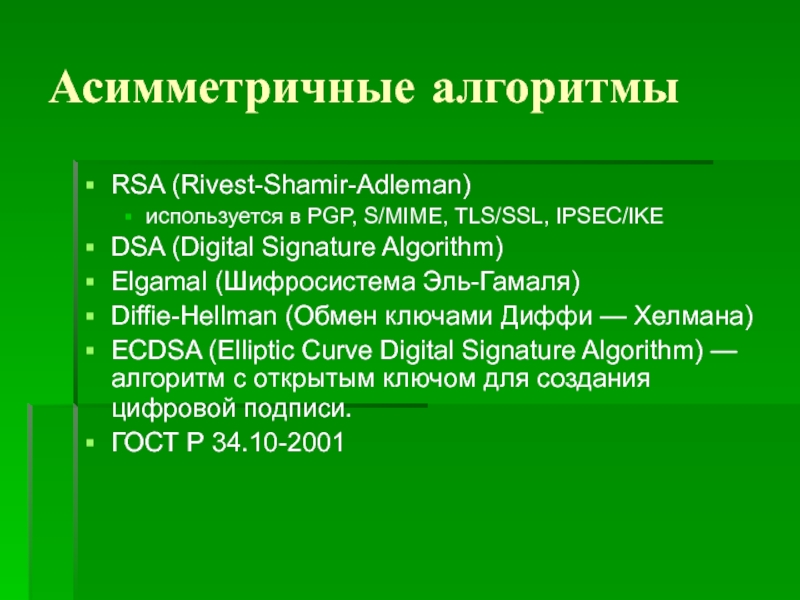 используется в PGP, S/MIME, TLS/SSL, IPSEC/IKE