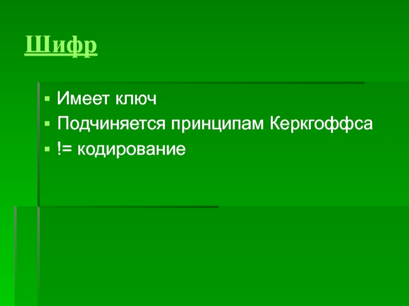 Хранение и передача ключа должны быть осуществимы без помощи бумажных записей; корреспонденты должны располагать возможностью менять ключ по своему усмотрению;