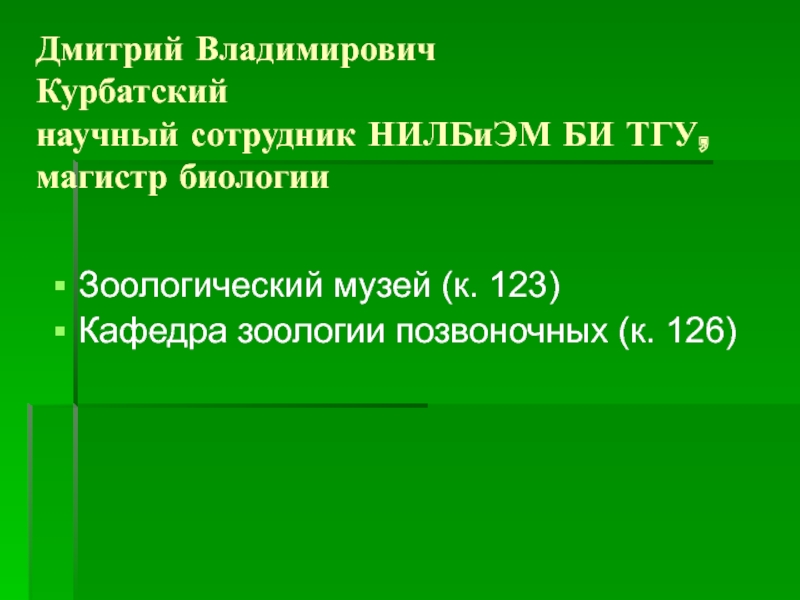 научный сотрудник НИЛБиЭМ БИ ТГУ, магистр биологии