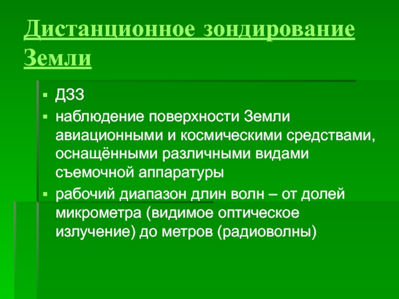 наблюдение поверхности Земли авиационными и космическими средствами, оснащёнными