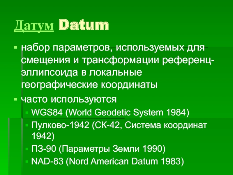 набор параметров, используемых для смещения и трансформации референц-эллипсоида