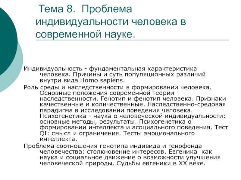 Слайд 23 Тема 8. Проблема индивидуальности человека в современной науке.