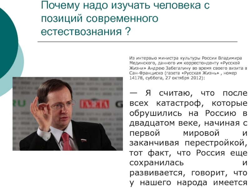 министра культуры России Владимира Мединского, данного им корреспонденту «Русской Жизни»