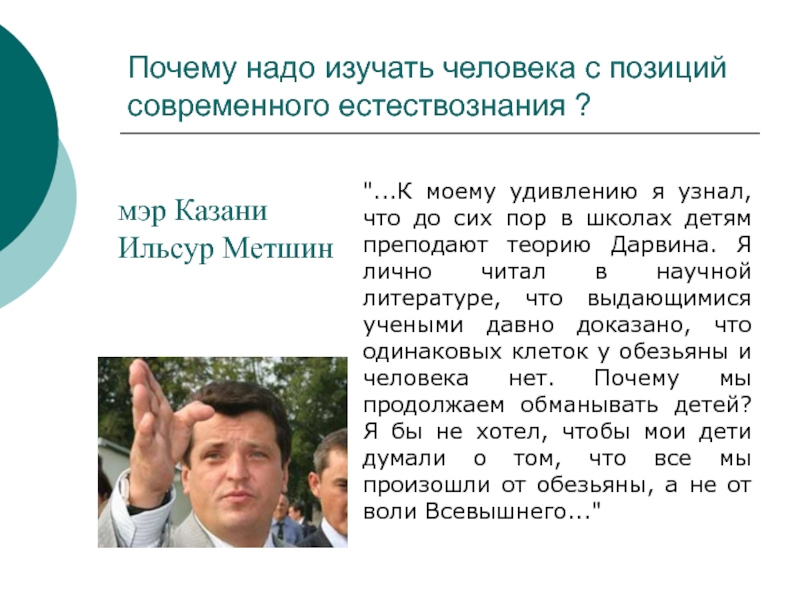 Слайд 9Почему надо изучать человека с позиций современного естествознания ?