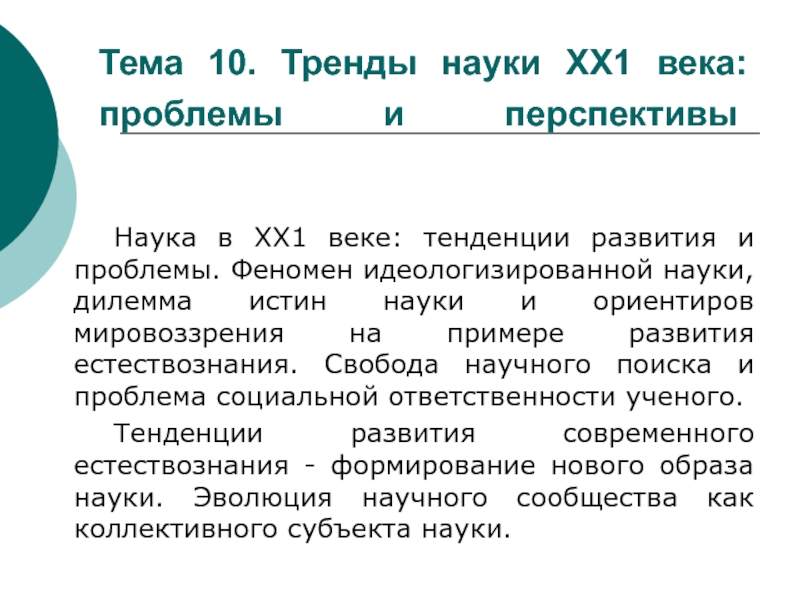 Тема 10. Тренды науки ХХ1 века: проблемы и перспективы