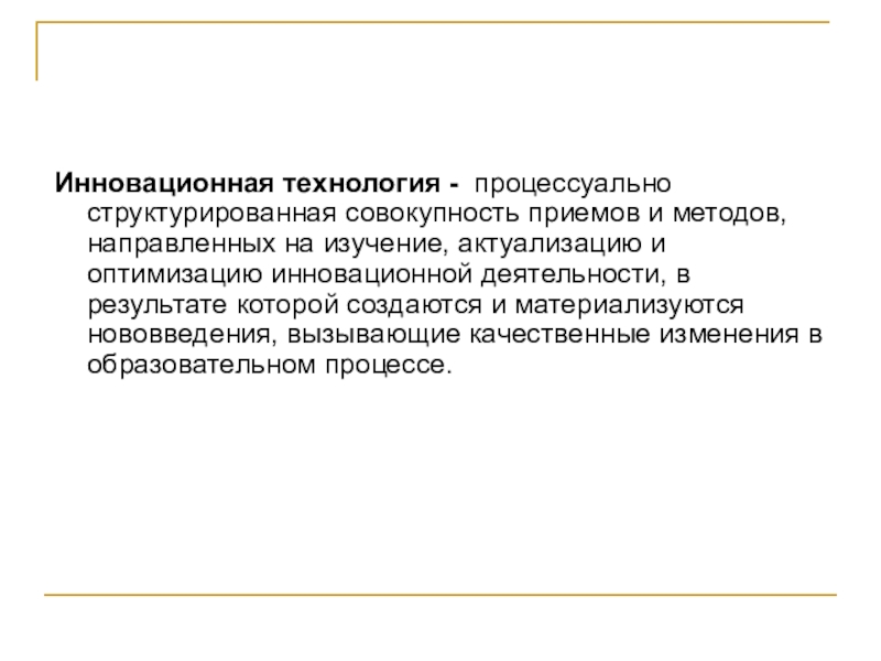 Слайд 11Инновационная технология - процессуально структурированная совокупность приемов и методов, направленных