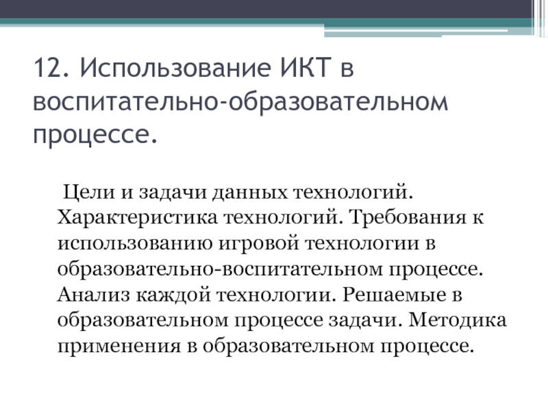 12.Использование ИКТ в воспитательно-образовательном процессе.