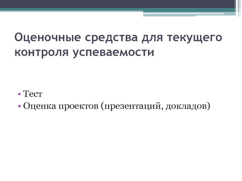 Оценочные средства для текущего контроля успеваемостиТест Оценка проектов (презентаций, докладов)