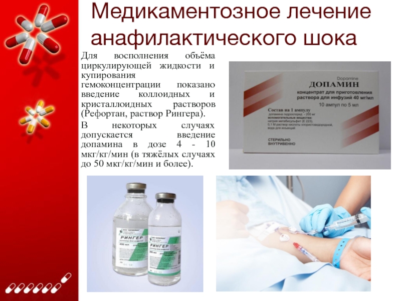 Слайд 12Медикаментозное лечение гиповолемического шока