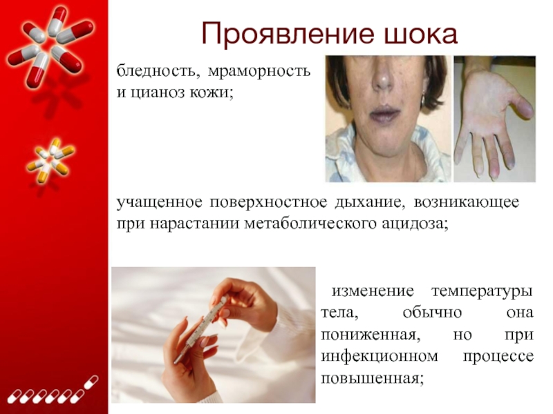 Слайд 6Проявление шока